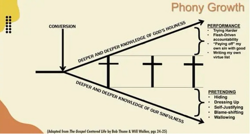 The chart above expresses obstacles to discipleship. On the one hand, there might be an emphasis on God's holiness, but not on one's sinfulness. This leads to legalism or moralism. On the other, guilt and shame might overtake their ability to recognize God's holiness. Both cases cause stagnation.